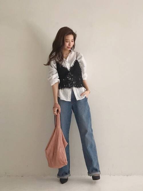 シャツ ブラウスを使った レースビスチェ の人気ファッションコーディネート Wear